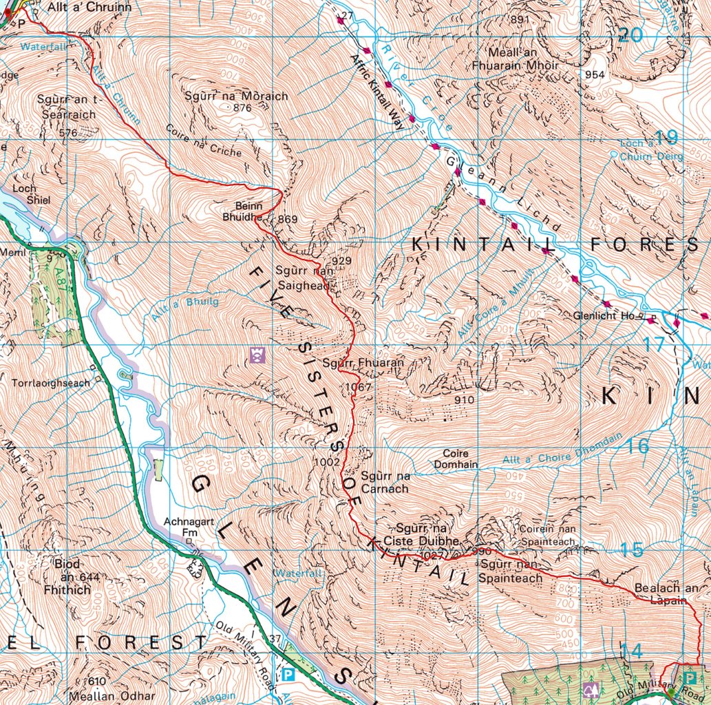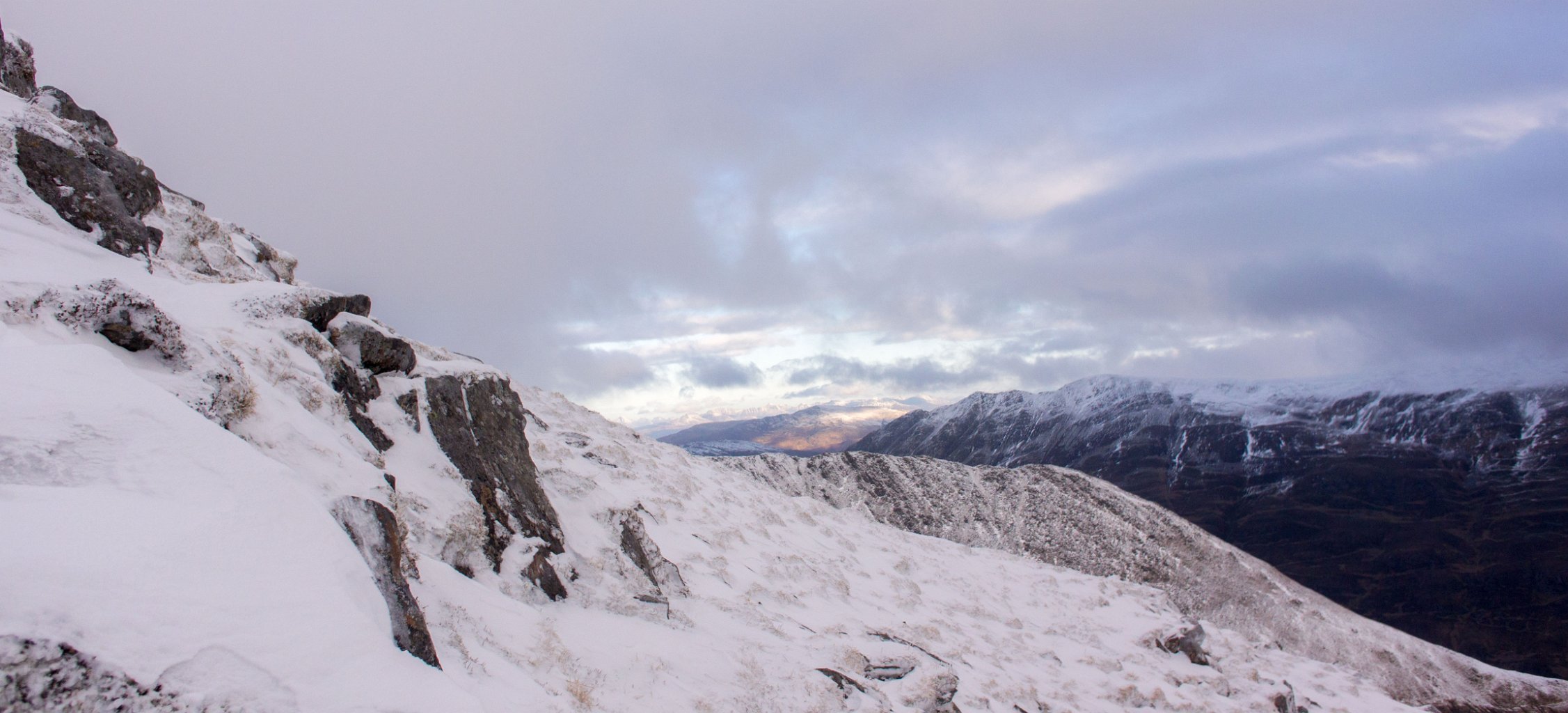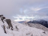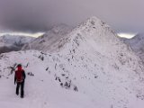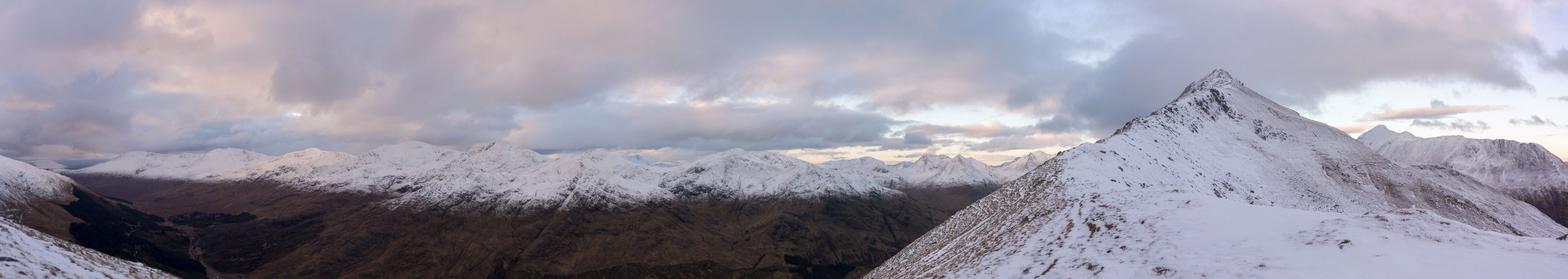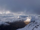 Early mornig start. The moon is setting behind those hills...Sunrise behind the first BrotherThe South Shiel Ridge and the start of the 5 Sisters RidgeSgùrr nan Spainteach with Sgùrr na Ciste Duibhe behind it (scraping the clouds0)South Shiel Ridge and Sgùrr na Ciste DuibheThe cairn of Sgùrr na Ciste Duibhe Invergarry Again...Invergarry