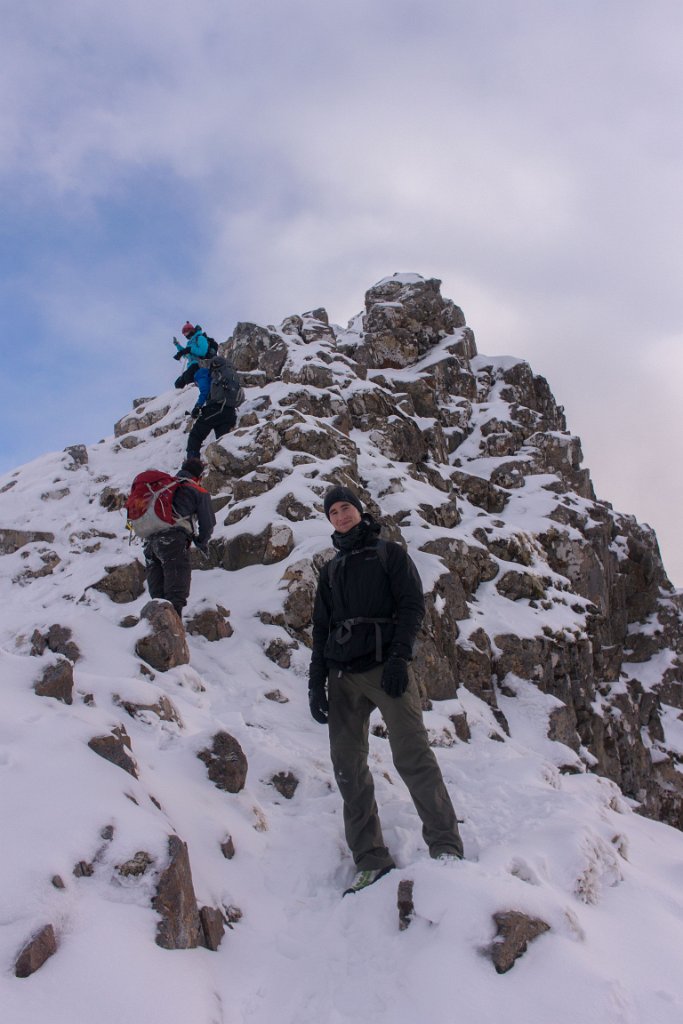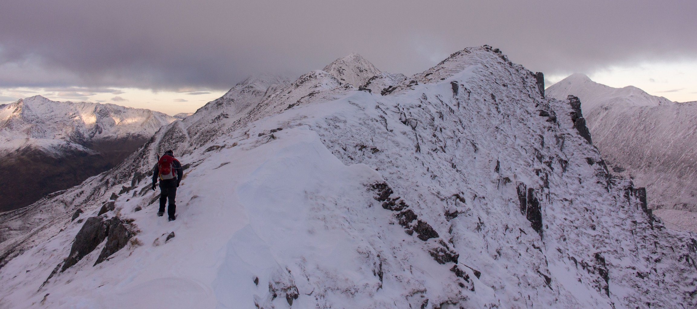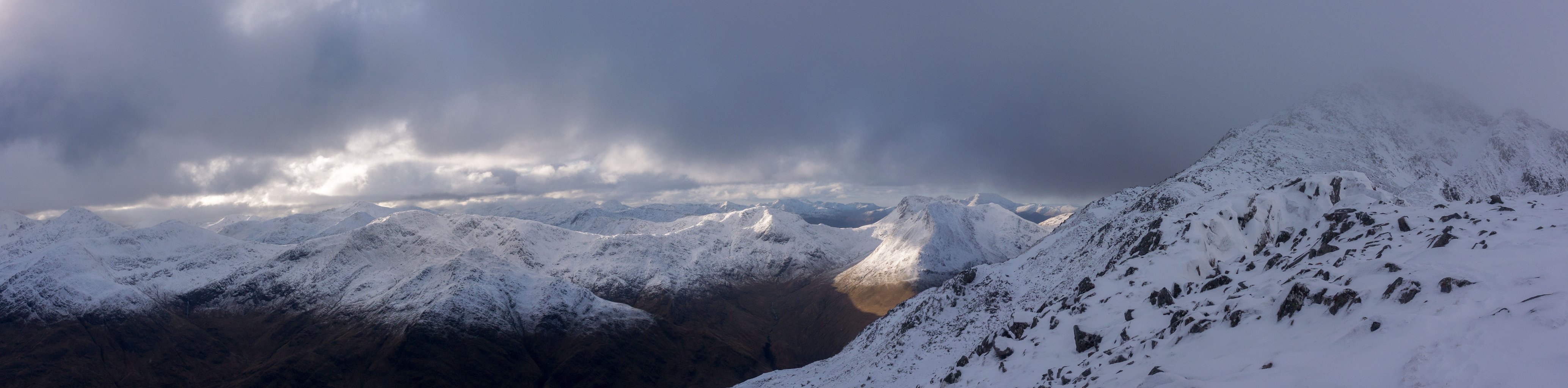 Early mornig start. The moon is setting behind those hills...Sunrise behind the first BrotherThe South Shiel Ridge and the start of the 5 Sisters RidgeSgùrr nan Spainteach with Sgùrr na Ciste Duibhe behind it (scraping the clouds0)South Shiel Ridge and Sgùrr na Ciste DuibheThe cairn of Sgùrr na Ciste Duibhe Invergarry Again...Invergarry